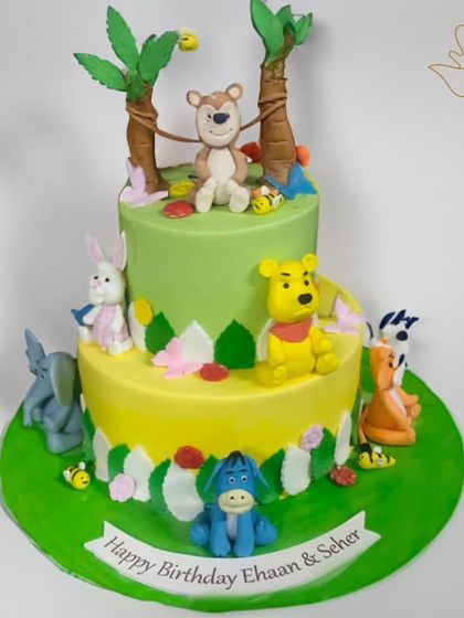 - Includes 1 to 2 handcrafted 3D fondant figures (e.g., animals, baby figures) or detailed 2D cutouts.
