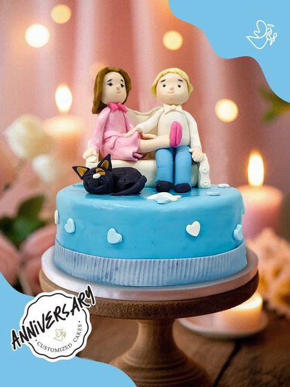 I make custom anniversary cakes with your story, inside jokes, and personal touches, including 3D toppers and milestone designs, delivered across Delhi NCR.