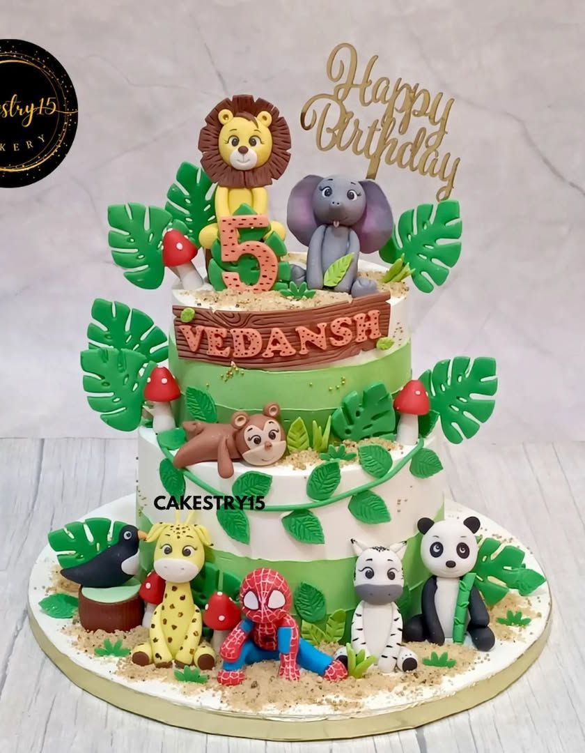 I design 100% eggless cakes that take your child on a wild safari. Each cake is a vibrant, handcrafted world of fun, featuring friendly fondant lions, elephants, monkeys, and more, set in a lush jungle landscape. These are perfect for little explorers and animal lovers.
