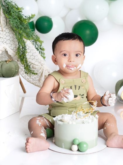 - First birthdays? Full-on celebration. I love marking the big ONE with setups that are a little extra, plus the messy fun of a cake smash. If you want a first birthday cake smash photoshoot, I get it all ready - custom cake, themed decor, and your little one just being themselves.