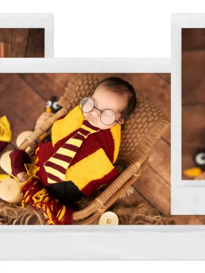 We photograph newborns, milestones, and families with studio setups, outdoor shoots, themed props, and 3D baby casting, plus we include pets and travel across Delhi NCR.