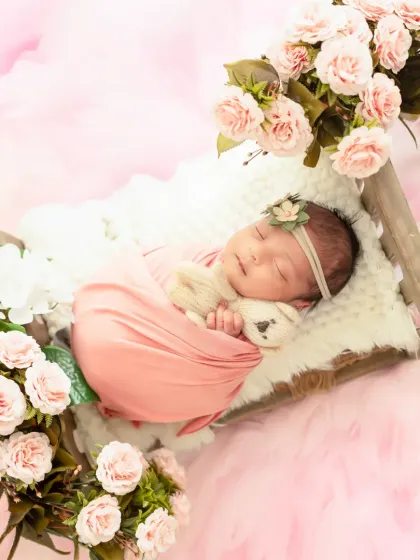 I handle newborns with care and patience, focusing on soft light and tiny details. Sleeping babies, swaddled in wraps, curled up in baskets or beds - that’s my go-to. I’ll get close-ups of those tiny fingers and toes. Parents and siblings are always invited to join in. If you want a theme or props, like flowers, or something fun (Harry Potter, anyone?), I’m game.