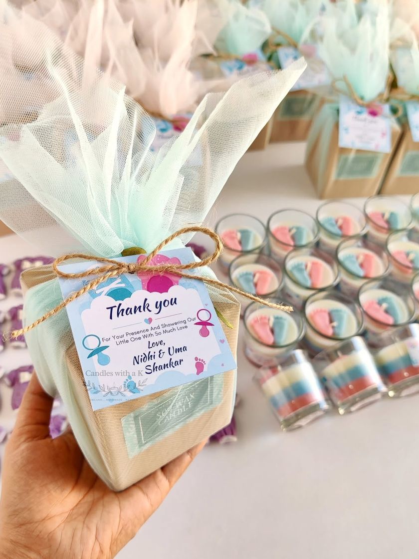 I create adorable, personalized return gifts for baby showers, naming ceremonies, and birthdays. From cute themes like teddy bears and farm animals to custom color palettes, every gift is handcrafted from 100% soy wax to make your little one's celebration extra special.