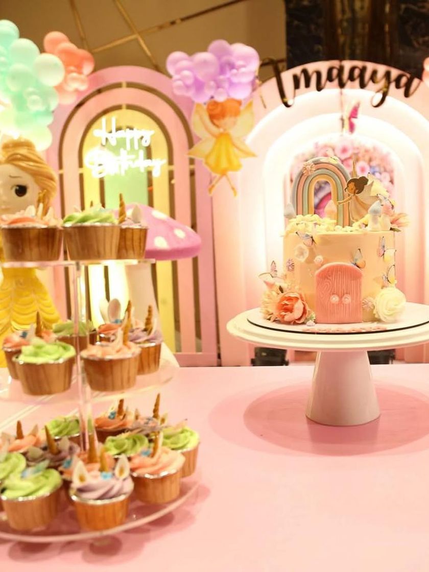 We bring your child's dream party to life with a fully themed dessert table. From magical fairy worlds to their favorite sports team, we design a stunning centerpiece cake and coordinate it with matching cupcakes and other treats.