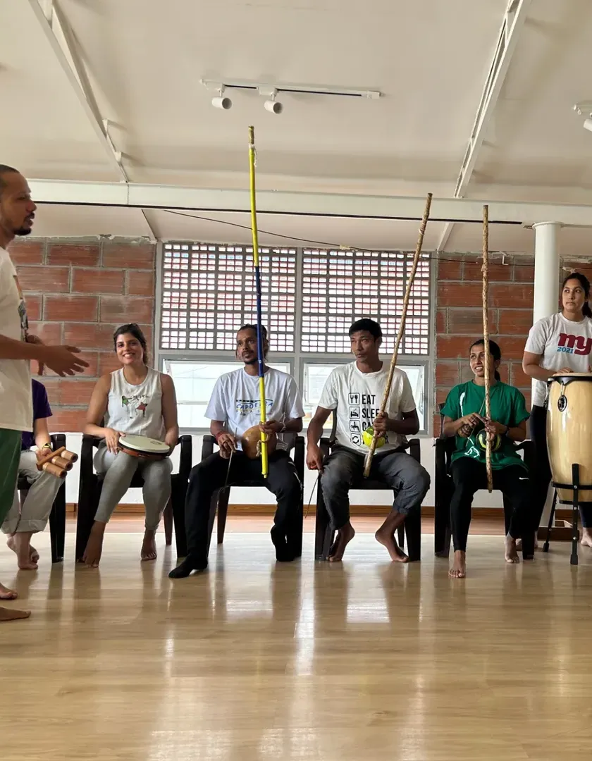 Music is the heartbeat of Capoeira. In our workshops, you'll learn to play traditional instruments like the berimbau and atabaque drum, clap rhythms, and sing call-and-response songs in Portuguese that drive the energy of the Roda.