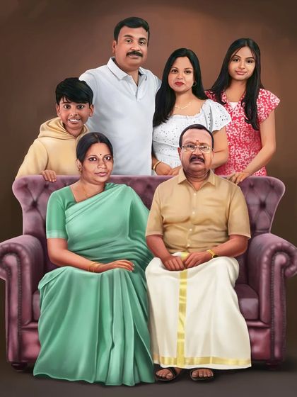 Namaskaram! I’m Sreeni, Kerala-born artist now sketching away in Bangalore. Art is my aavesham (passion) – mwone, I live for it. If you’ve seen my Indian cricket team caricature or the 'Aavesham' movie twist, that’s me! Nothing beats making a snehasammanam (gift of love) for someone’s teacher or parents and catching their smile. My art isn’t just a digital painting, it’s your memory, frozen. Let’s make your moments a bit more special, no?