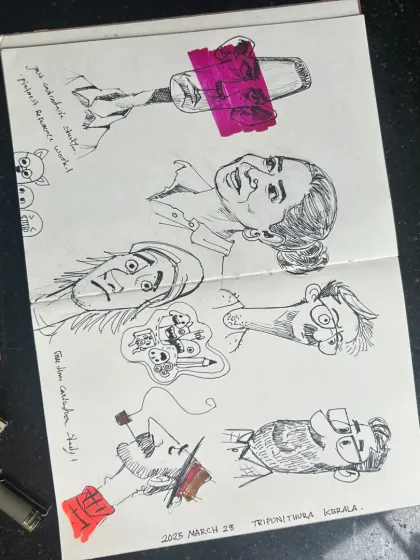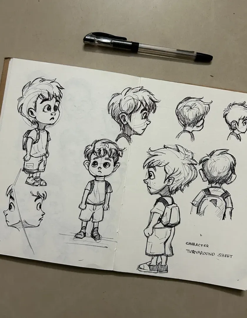 A peek into my sketchbook where ideas begin. These raw pen and ink drawings are the foundation of my digital art, showing my passion for character design and illustration.