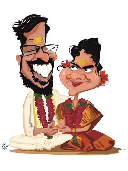 Main ek artist hoon (I'm an artist) and for me, a caricature is way more than just a funny face – it's your story with all the quirks and laughs. I take your photos, your ideas, and turn them into detailed, colourful digital illustrations from my studio in Kolkata.