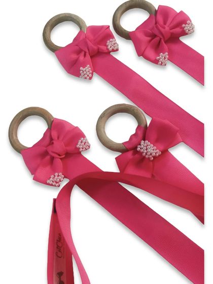 Don't let your beautiful clips get lost. Our handmade organizers feature a wooden ring and long ribbons to neatly display your collection, doubling as a cute piece of room decor.