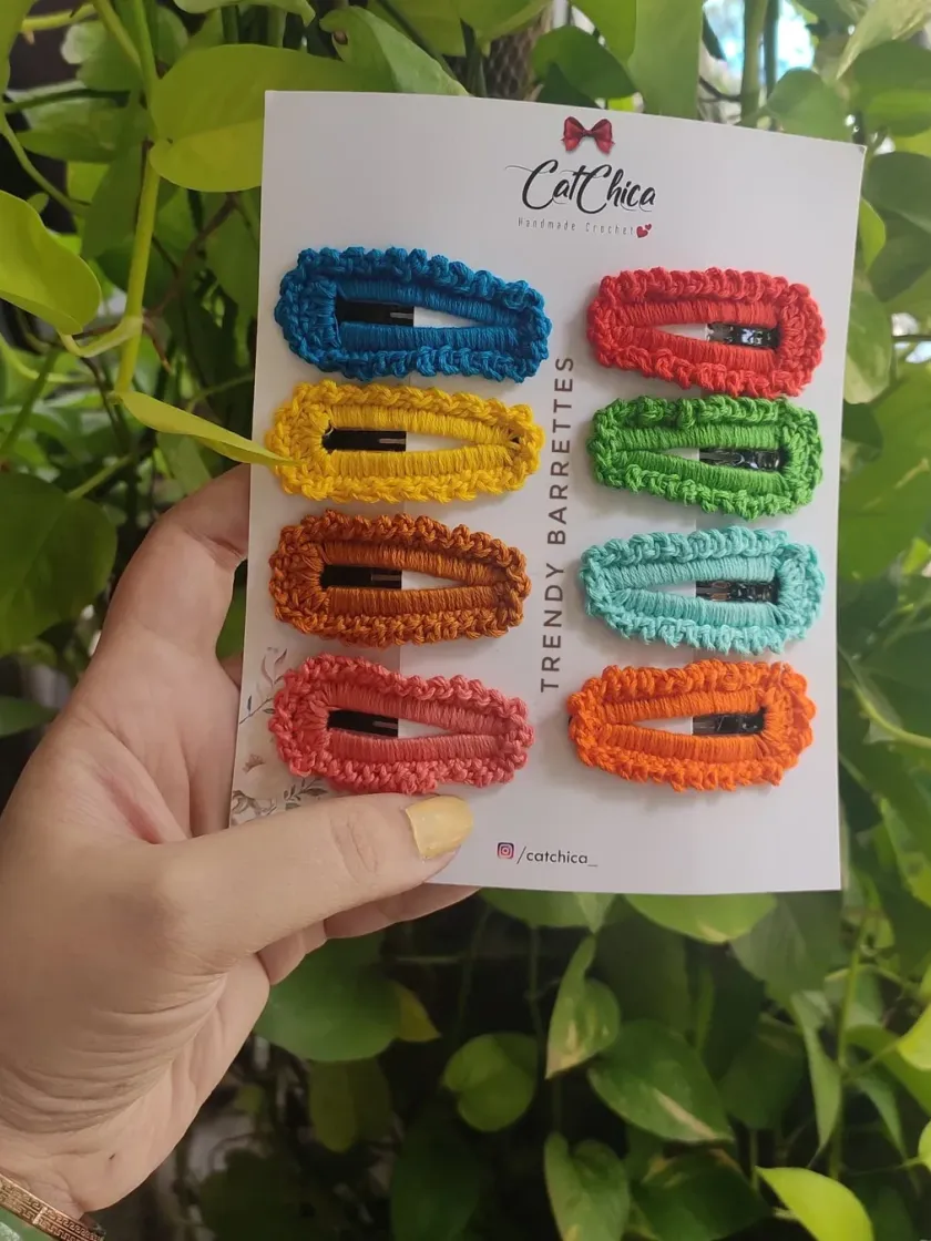 Our simple and vibrant crochet barrettes are perfect for daily wear. Available in a wide range of solid colors, you can buy them in pairs or as a full set to match any outfit.