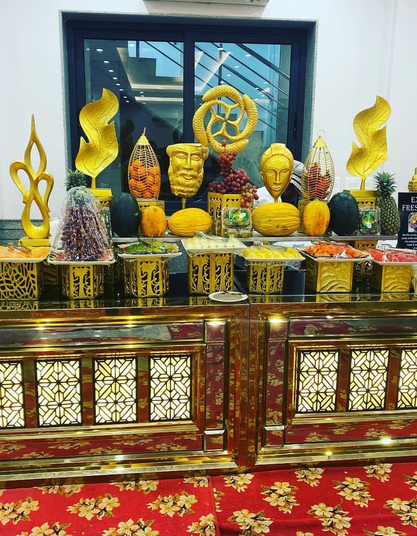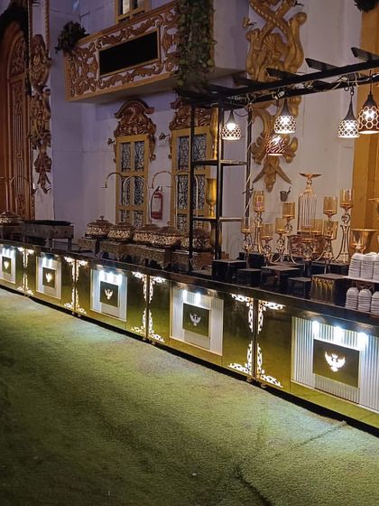 For conferences, galas, and large office parties, the buffet is the centerpiece. We design our buffet spreads to be visually grand and highly functional, using premium golden chafing dishes, elegant decor, and clear labeling to ensure a smooth flow of guests and an impression of luxury.