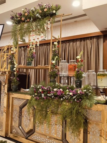 Grand Setups - Unique counters, grand floral decoration, lighting - har event ko ek alag look milta hai.