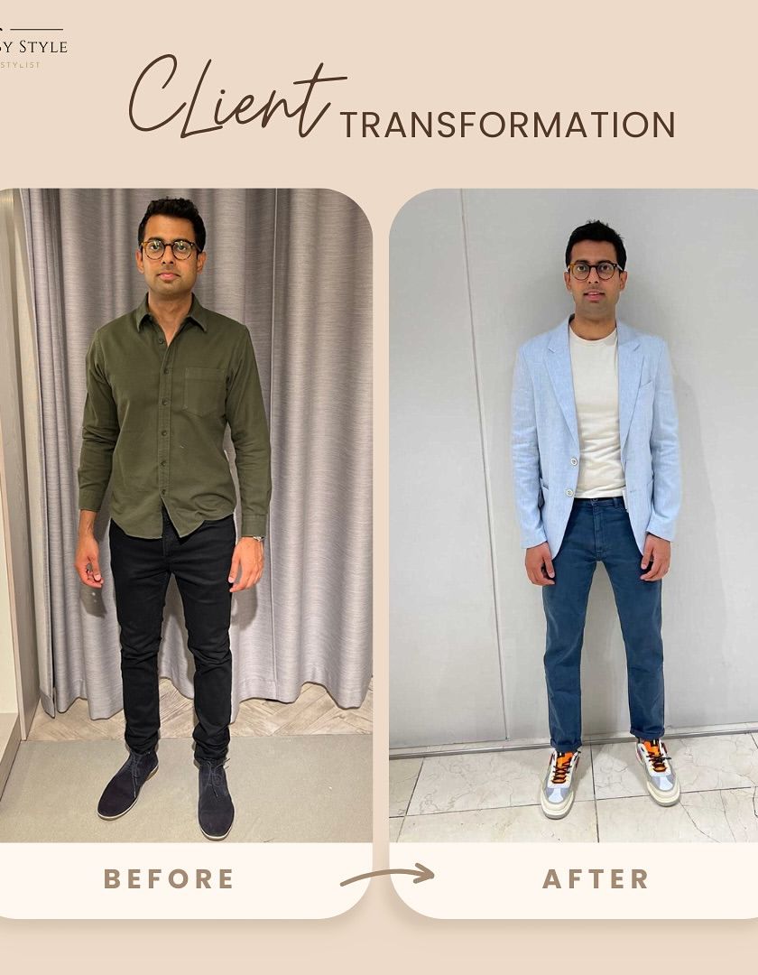 See the real-life impact of personalized styling. I help clients find clothes that fit their body shape, lifestyle, and personality, resulting in a major confidence boost. These before-and-afters show how the right outfits can completely change your presence.