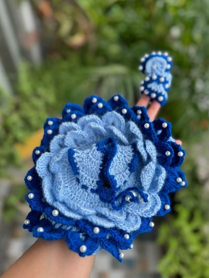 We create handcrafted fashion accessories including tote bags, moon jute bags, rose bags, hair accessories with gajra and rose designs, and winter mufflers. Each piece is meticulously crafted using 4ply yarn, ensuring durability and quality.