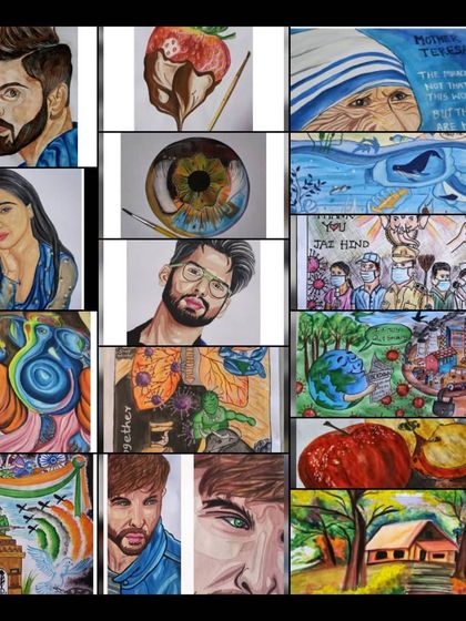 Art Services I Offer - Realistic portrait pencil sketches, custom rangoli for weddings, wall murals, clay sculptures, art classes, and hand-painted items. Pan India shipping.