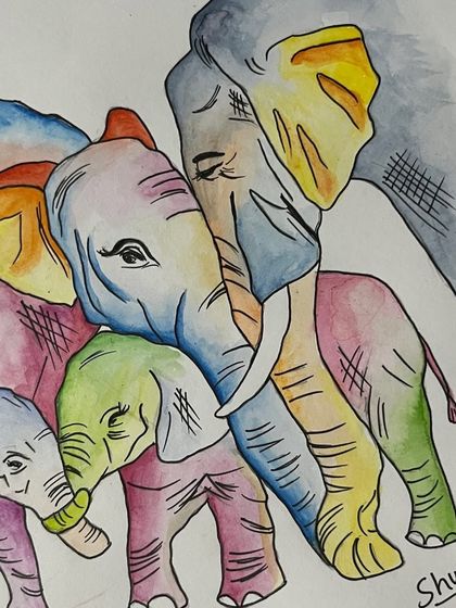 I draw inspiration from the natural world, painting animals and botanicals in watercolor and acrylics. My work includes everything from detailed monochrome elephant families and vibrant peacocks to delicate floral compositions.