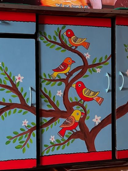 - Upcycled hand-painted furniture, from boring tables to vibrant cupboards