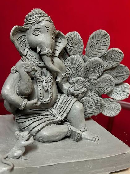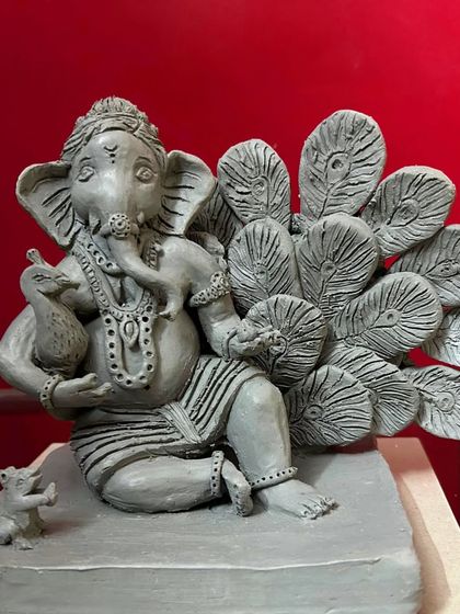 If you want something different - like Bappa on a crescent moon or with a peacock feather backdrop - just tell me. Every order is commission-based, so your idol is made only for you.