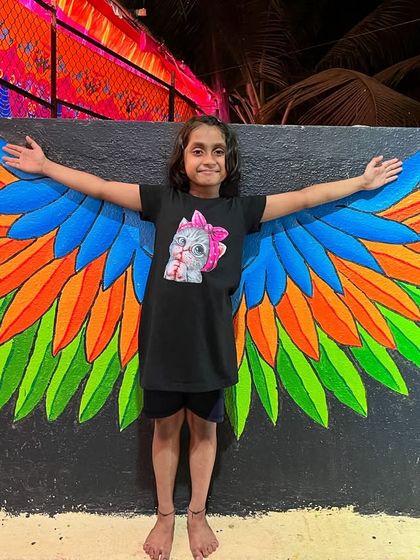 - Interactive mural space - selfie spots with angel wings, or a bright welcome mural with 'Suswagatam'.