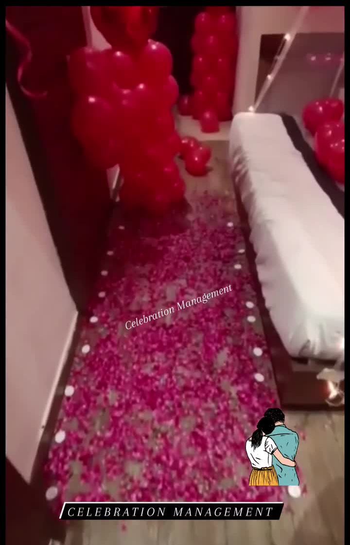 I specialize in creating intimate and romantic surprise decorations right in your home. These setups are perfect for a partner's birthday or an anniversary, using elements like fairy light canopies, paths of rose petals, heart-shaped balloons, and personalized touches to make your loved one feel truly special.
