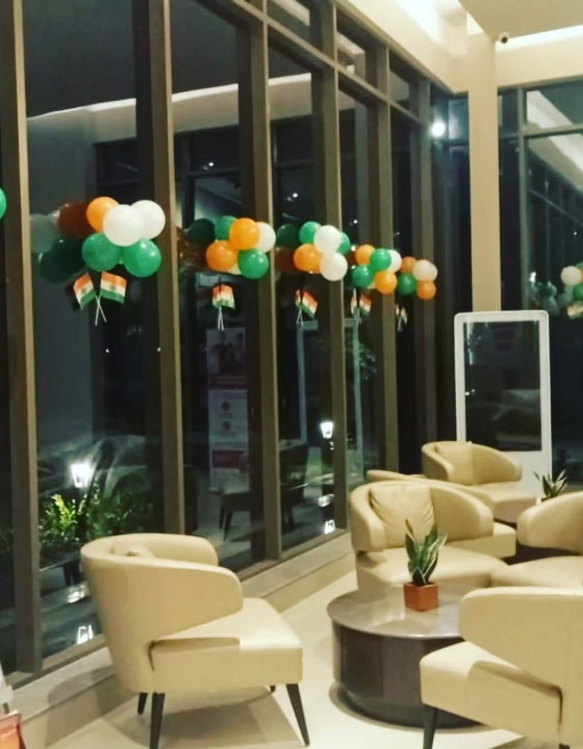 Celebrate Independence Day or Republic Day with spirit right in your office. We create tasteful and energetic environments using tricolour balloon bouquets, streamers, flags, and custom installations for lobbies, entrances, and common areas.