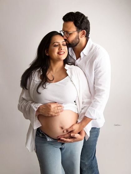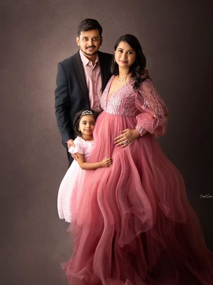 We offer maternity photo sessions in our studio with a range of outfits, props, and lighting styles, and you can include your partner or kids for natural, memorable photos.