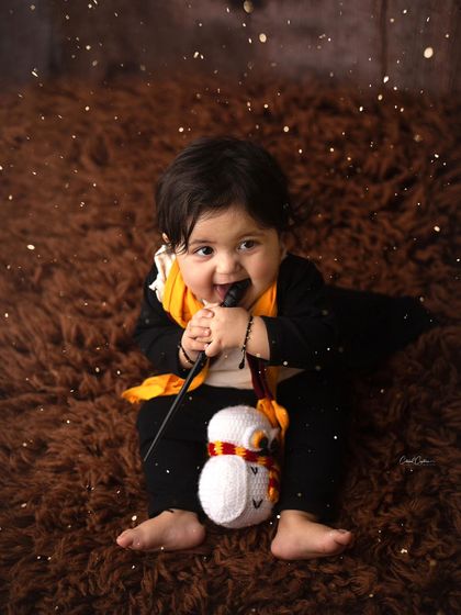 Let's bring your child's favorite stories and ideas to life with a fully themed photo session. I provide all the costumes and props for unique themes like Harry Potter, Little Krishna, and more.
