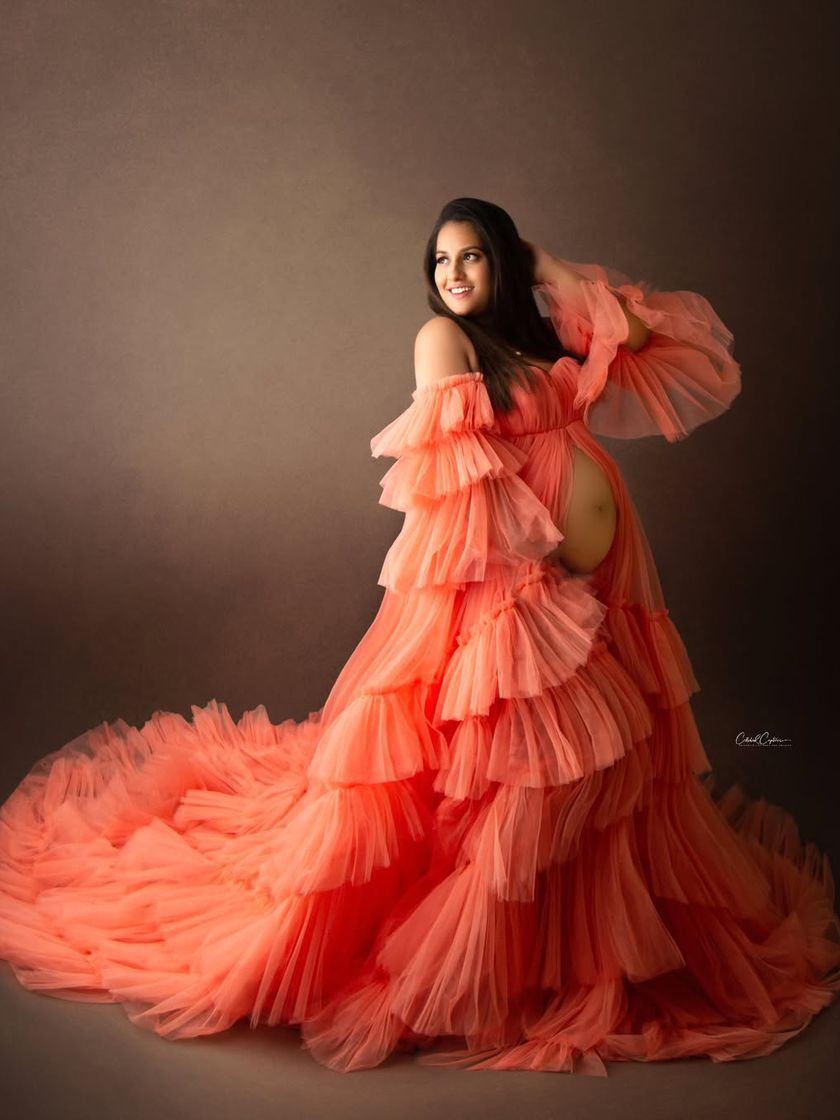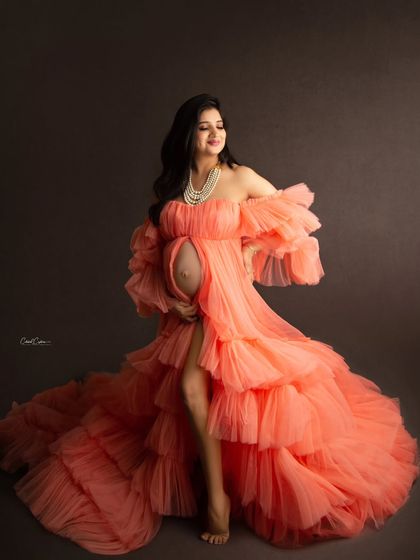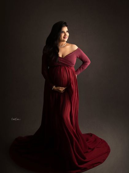 My studio wardrobe is filled with a wide variety of stunning gowns to make you feel amazing. This collection showcases different styles, from dramatic flowing fabrics and vibrant colors to delicate lace and sparkling sequins, all designed to beautifully highlight your baby bump.