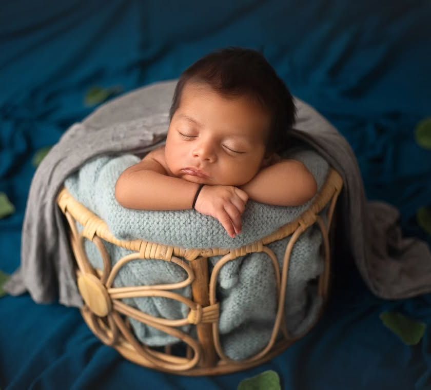 My studio is filled with a wide variety of safe, baby sized props, including rustic baskets, tiny wooden beds, and cozy bowls. These props add texture, dimension, and a touch of whimsy to your newborn's portraits. Each setup is carefully styled with soft layers and fabrics to ensure your baby is always comfortable and secure.