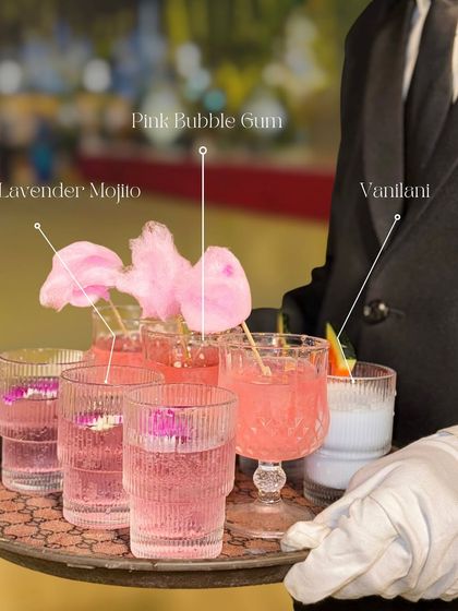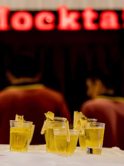 We set up live food and drink stations where guests watch, customize, and enjoy dishes and drinks made fresh in front of them, covering chaat, grills, Asian, South Indian, breads, mocktails, and desserts.