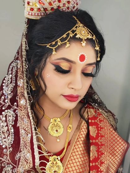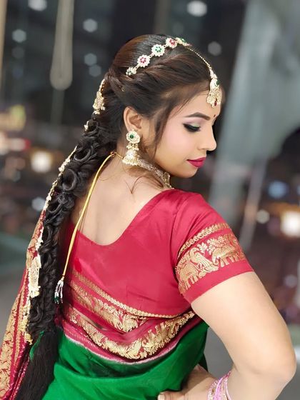 I do full bridal makeup and hair for all wedding events, match your look to your outfit and style, use top brands, and travel anywhere in India for your big day.
