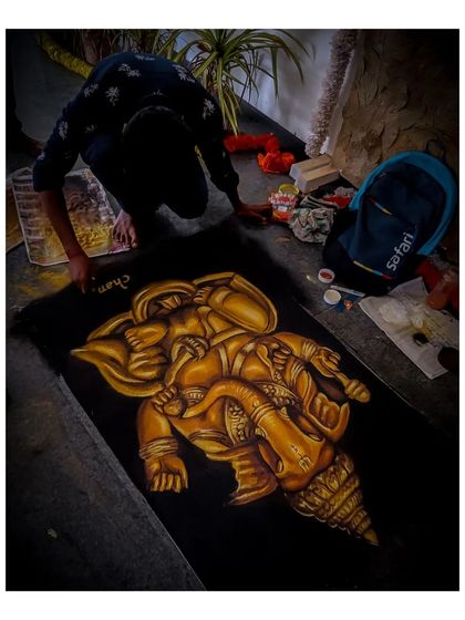 I make big, custom rangoli art for events and festivals, all freehand and tailored to your theme, with live performance if you want.