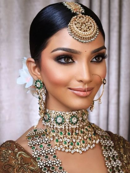 For your cocktail, sangeet, or reception, we'll create a look that is pure glamour. I specialize in dramatic smokey eyes, sculpted features, and a glowing base that is guaranteed to be sweatproof and waterproof. Whether you want bold and edgy or sophisticated and chic, I'll design a look that ensures you are the star of the evening.