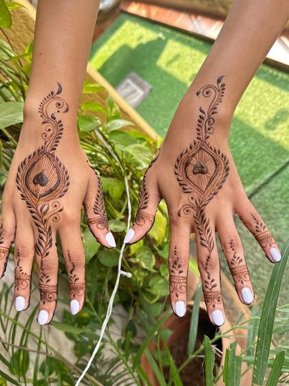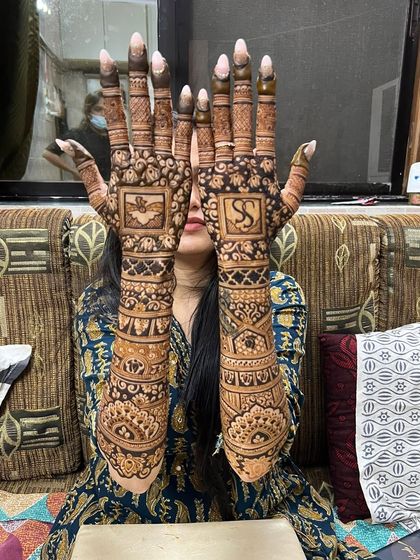 For the bride who dreams of classic, full-coverage mehendi. I create dense, detailed patterns from fingertips to elbows, filled with traditional motifs like peacocks, elephants, and florals for a truly regal look. My pure, natural henna ensures a deep, rich stain every time.