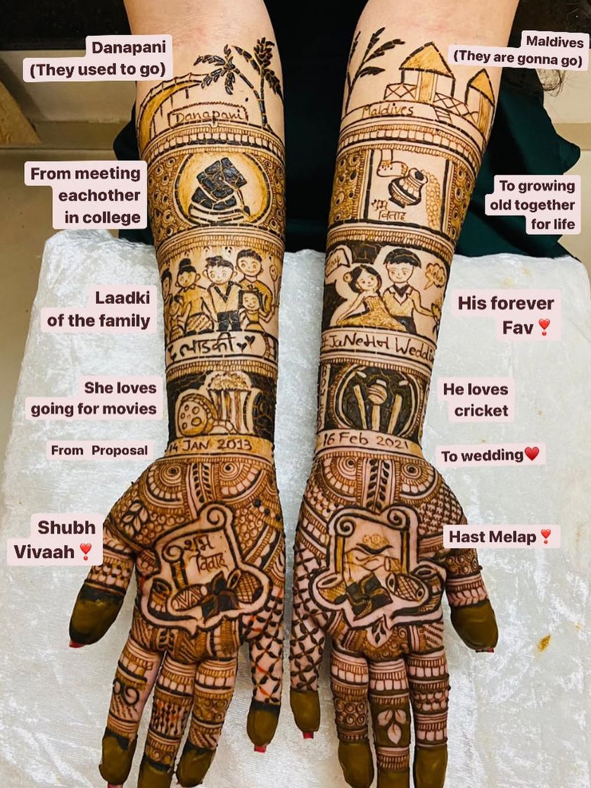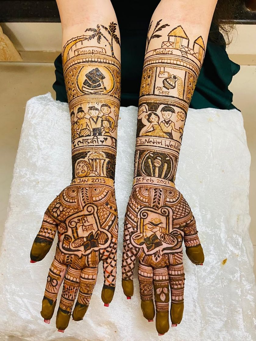 Your love story is unique, and your mehendi should be too. I love weaving personal details like your proposal story, favorite city, hobbies, or even your pet into your bridal henna, creating a design that is 100% you. This is my absolute favorite thing to do.