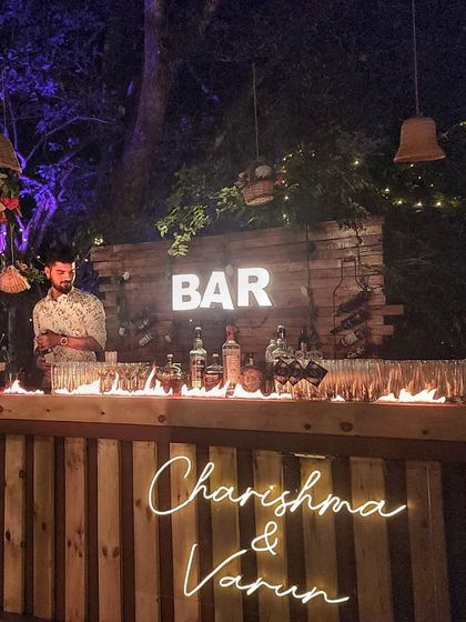 We roll in with everything - wooden bars with fairy lights, LED setups, even a sharab di gaddi (boozy ride) if that’s your vibe. Custom neon, tropical feels, you name it. If you want something quirky, just ask.