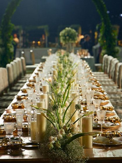 - Tableware: Gold/Silver charger plates, crystal glassware, linen napkins, and customized menu cards.
