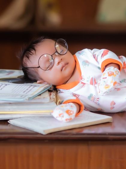 These sessions are designed to be calm, cozy, and completely stress-free for you and your baby. I focus on capturing the delicate details and peaceful expressions of your newborn using safe posing techniques, soft wraps, and a variety of creative themes like our popular "little scholar" and "bumblebee" setups.