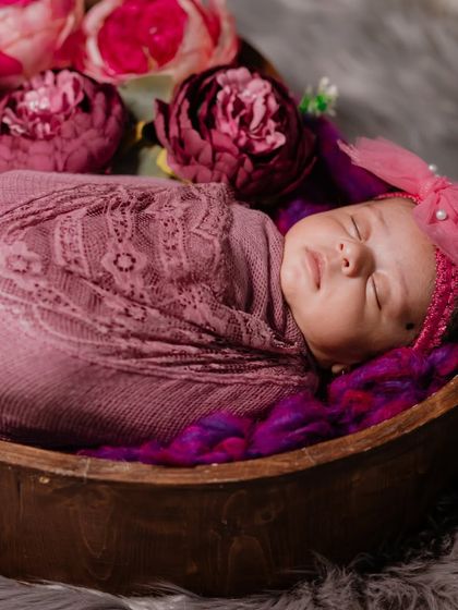My newborn sessions are slow, gentle, and entirely focused on your baby's comfort and safety. I use soft wraps, cozy props, and creative setups to capture the tiny, precious details of your new arrival in their first few weeks of life.