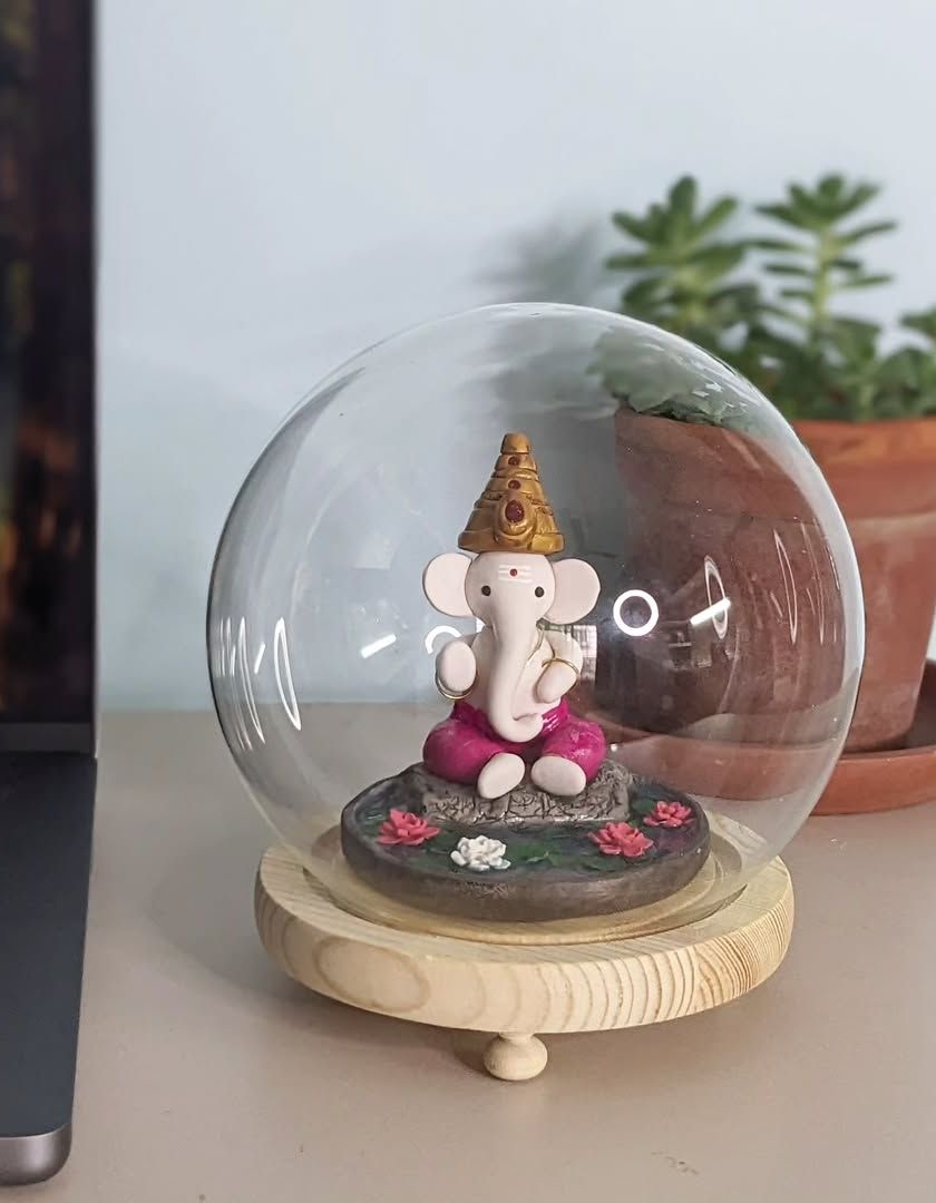 Celebrate special moments with unique, handmade idols and decor. I create miniature Ganesha murtis for your puja or desk, and charming Christmas-themed pieces, alongside beloved characters for the perfect thoughtful gift.