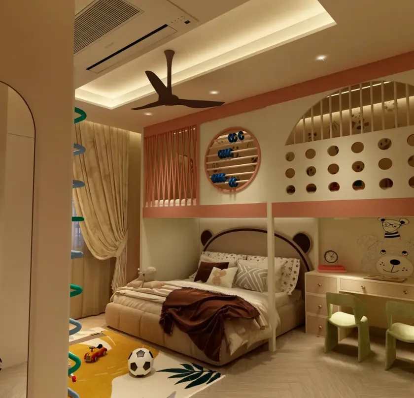 I design kids' rooms to be fun, safe, and inspiring spaces that grow with them. By combining playful themes like climbing walls and custom bunk beds with smart storage and child-safe materials, I create magical environments for play, study, and rest.
