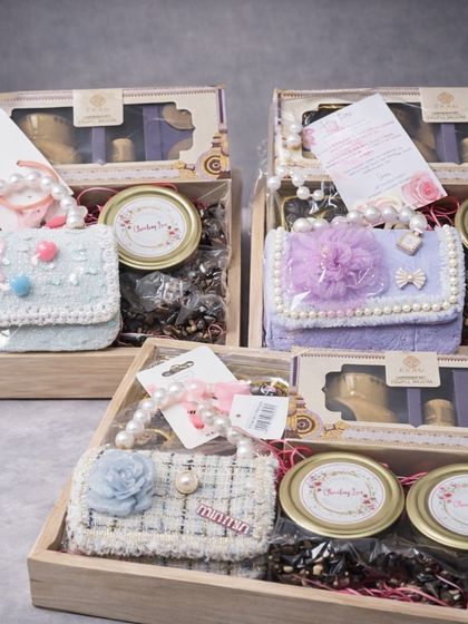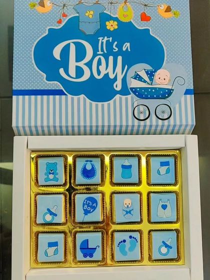 - Custom baby announcement hampers for new arrivals - simple chocolate boxes or fancy baskets, all with a personal touch.