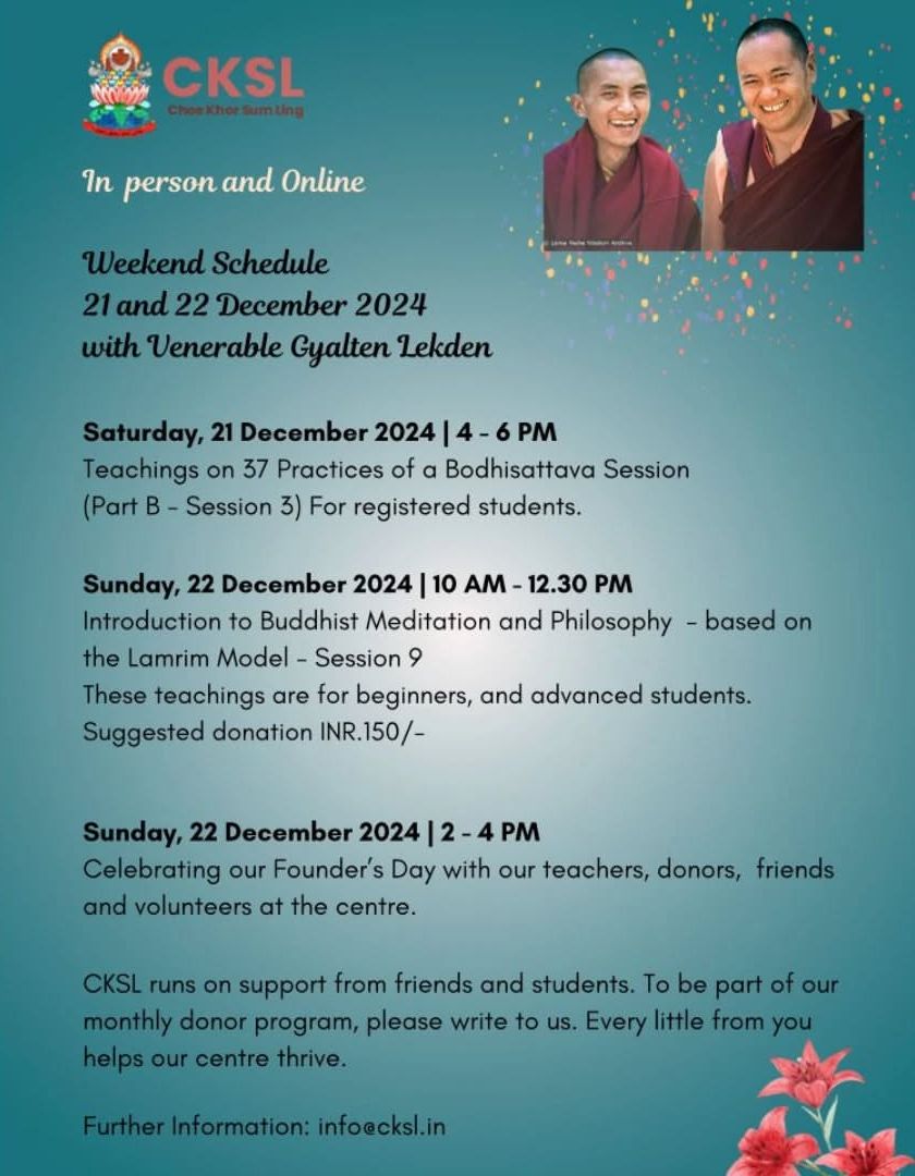 Stay up to date with all our offerings. Here you can find our monthly schedules and announcements for new courses and special events, available both online and in-person at our Bangalore center.