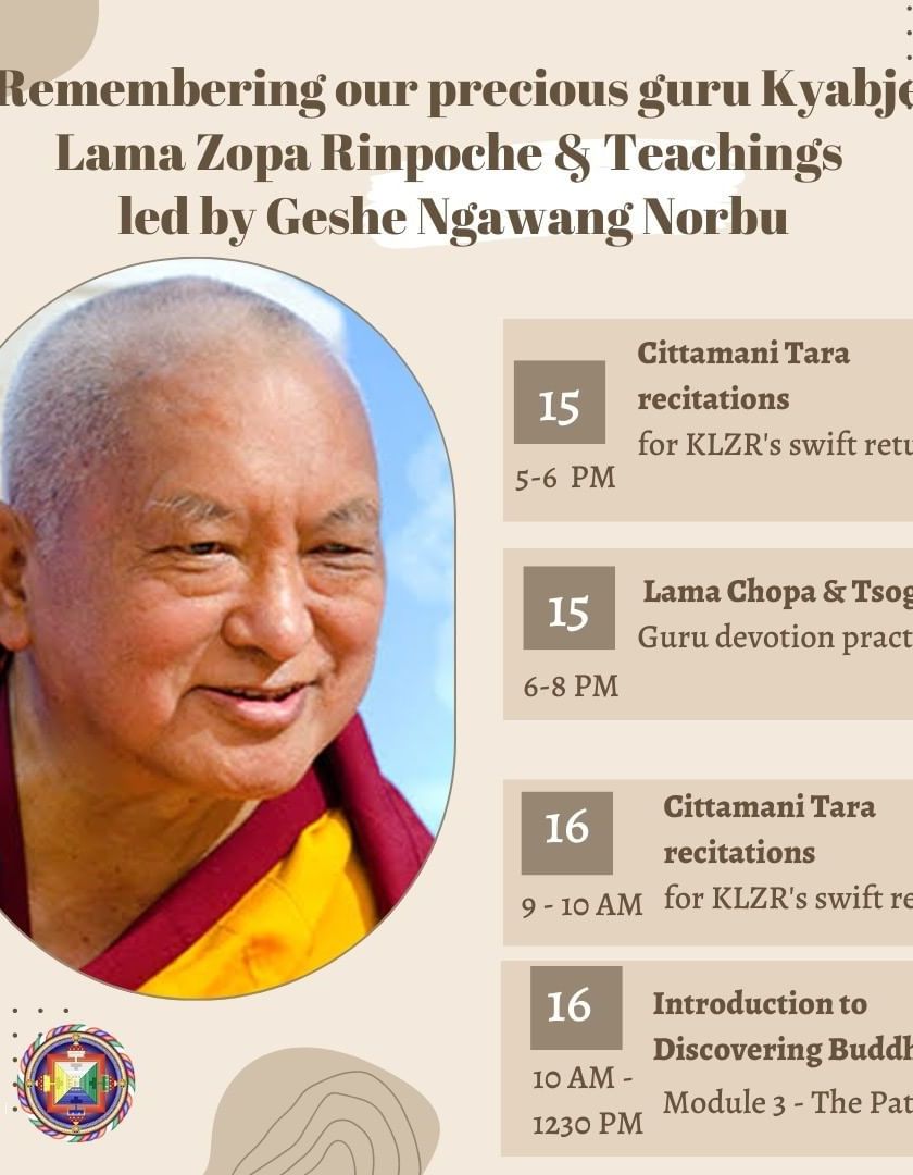 Our practice is deeply rooted in the lineage of our precious gurus. We hold special events to remember their immense kindness, celebrate their lives, and pray for their swift return. These gatherings, which include Guru Pujas and mantra recitations, are a cornerstone of our devotional practice.