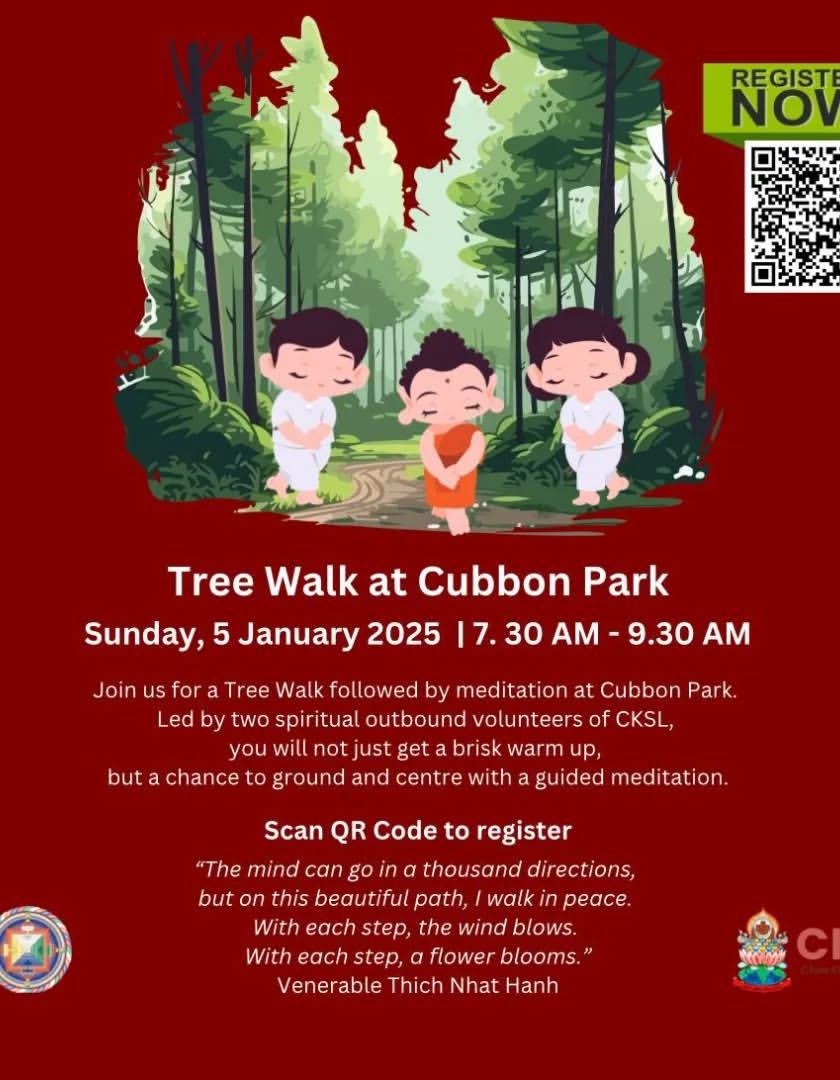 Our center is more than a place for teachings; it is a spiritual home where our Dharma family connects. We organize informal gatherings like mindful walks in Cubbon Park, movie screenings, and volunteer days for center upkeep, fostering a warm and supportive community spirit.