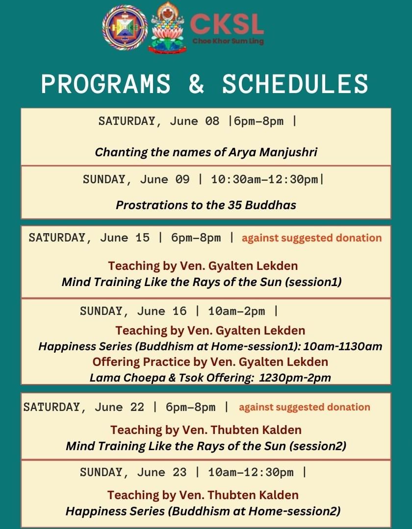 Here you can find our monthly schedules at a glance. These calendars provide a comprehensive overview of all upcoming weekend teachings, special events, and community activities, helping you plan your participation in our center's programs.