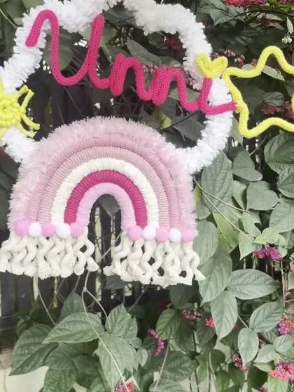 I handcraft these personalized name signs by shaping sturdy wire and wrapping it in soft, colorful yarn. They are perfect for hanging on a wall or door and can be made in any color to match your child's room.