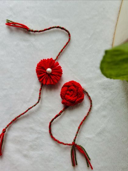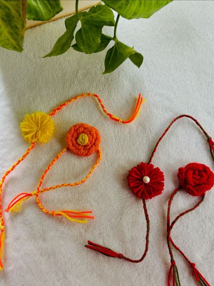 We craft traditional Indian festival bracelets using crochet and macrame techniques. Each rakhi is handmade with crochet yarn and braided threads, offering unique designs that celebrate the special bond between siblings.