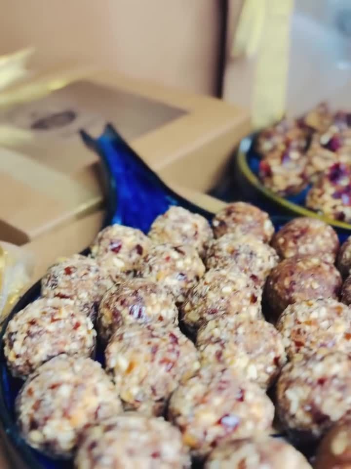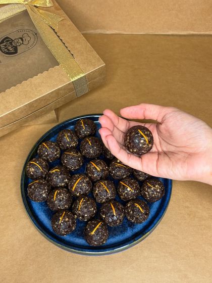 My energy balls are a modern, healthy take on the traditional ladoo, made with Medjool dates for natural sweetness. They are completely raw, vegan, gluten-free, and contain no added sugar, available in flavors like Belgian Chocolate Roasted Almond and Toasted Cashew & Coconut.