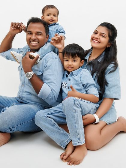 My studio is a blank canvas for your family's story. I use clean, simple backdrops and professional lighting to create timeless portraits that are perfect for your home. We'll mix classic poses with playful, candid shots to capture your family's true personality.